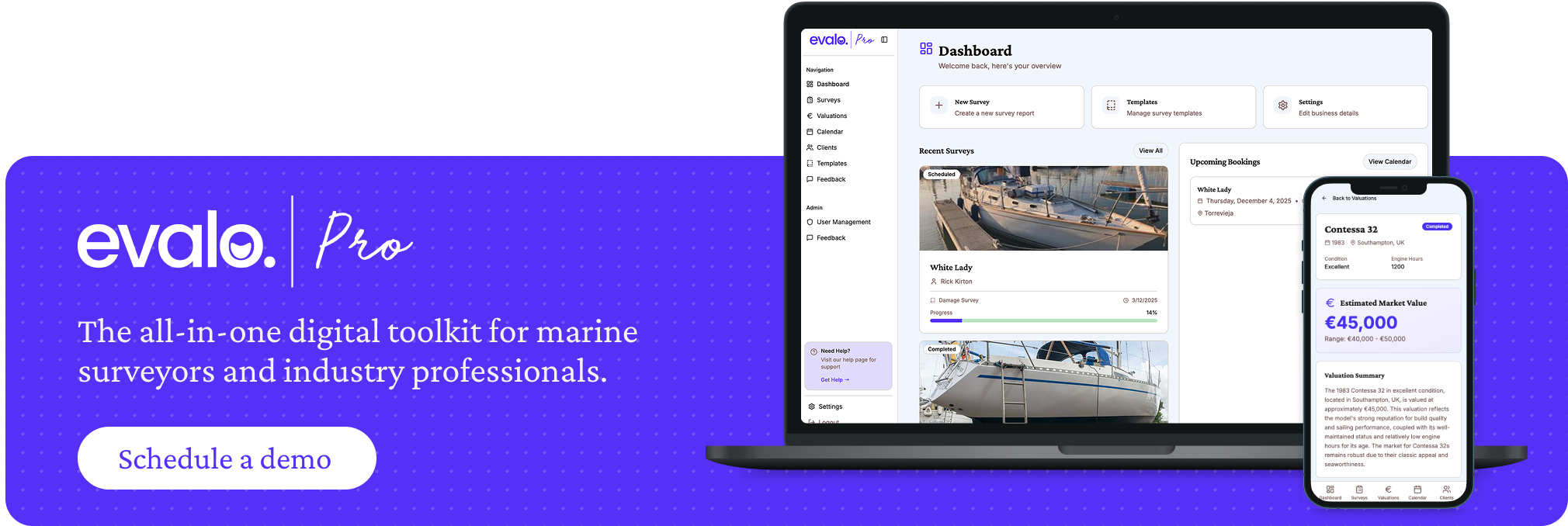 My belief is that the future of yacht surveying belongs to the professionals who combine deep marine knowledge with modern tools that support their expertise rather than dilute it. That’s what we’re building with evaloPro. Technology that works behind the scenes, quietly, to let surveyors focus on the part of the job that really matters.